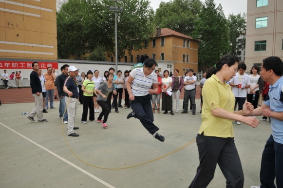 本部讯 4月27日下午,校工会组织的2011年春季职工跳绳比赛在校体育场举行,副校长魏文章和工会主席李涛出席并为获奖选手颁发了奖品,全校100多名教职工参加了比赛。