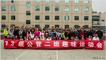 踏着春日的繁花烂漫,迎来了2013级公管2班趣味运动会。4月12日我班趣味运动会在省委党校体育场举行,运动会项目分团体项目和个人项目。上午团体项目在班级小组间展开,每两个小组共同比赛。七个小组经过两个多小时的奋力拼杀,抡大绳项目——第三小组以3分钟 145次的成绩取得冠军;同心鼓项目——第一小组以连续不断接球72次获得冠军。下午个人项目在校室内运动馆正式开始,共分乒乓球、羽毛球两个大项。经过角逐,孙秦勇、王晓绒两名同学分别取得乒乓球男单、女单冠军,黄星源、王婧同学分别取得羽毛球男单、女单冠军。这次运动会真正体现了我班参赛选手努力拚搏的运动精神,加深了同学之间了解,增进了友谊,提高了班级凝聚力,增强了团队合作意识,同时为同学们提供了一个进一步互相了解交流的平台,在同学们的喝彩声中圆满结束。